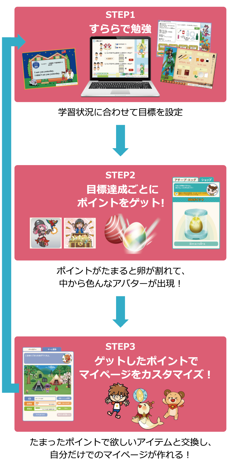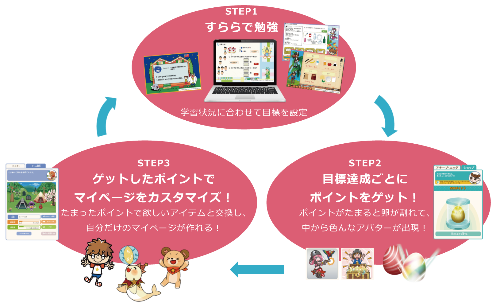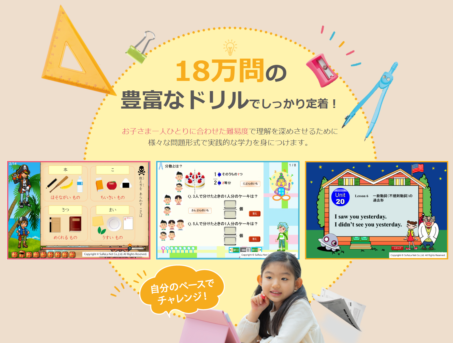 ゲーム感覚で勉強できるので記憶に残り安く、時間を忘れて1人でも楽しく集中して勉強できる工夫がたくさんあります。