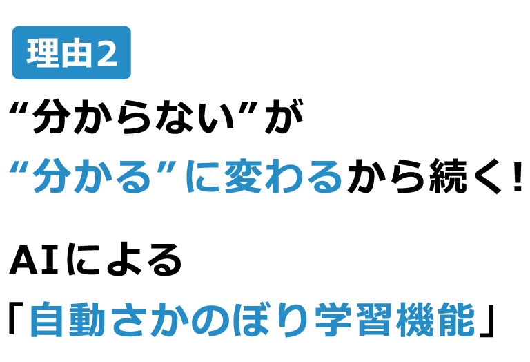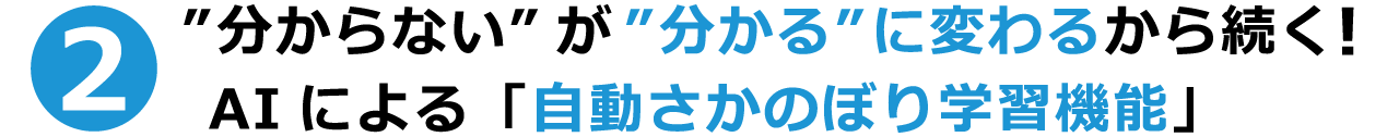 お子さまの現在の学年に関係無く、学校の勉強についていけなくなったところまでさかのぼり、「自動さかのぼり学習機能」で分かるまで繰り返し学習できます。